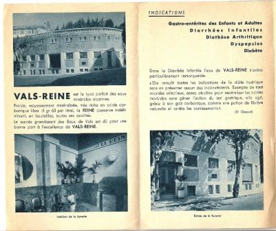 Cette collection date des années 30, comme en attestent les documents publicitaires de la société d'eau minérale VALS-REINE de la saison 1935, au sein de la ville thermale de Vals-les-Bains, très appréciée pour ses souces d'eaux ferrugineuses.